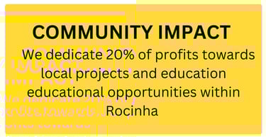 We follow ethical tourism practices, keep our groups small, and design every route to respect the integrity of the neighbourhood. Your visit makes a difference: 20% of all profits are invested back into Rocinha through local programs and community initiatives, ensuring your experience has a positive impact and leaves you with a deeper connection to the favela.