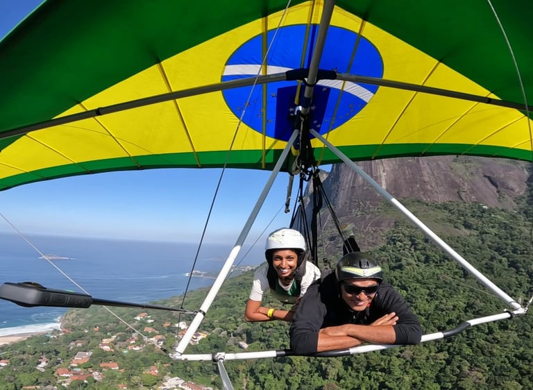 With over 30 years of experience, our certified hang-gliding partners offer a safe and exhilarating adventure above Rio de Janeiro. You’ll take off from Pedra Bonita, in Tijua National Park, gliding effortlessly over tropical forest, coastal cliffs, and golden beaches before landing on the sands of São Conrado beach. As you soar, you’ll enjoy panoramic views of the Atlantic Ocean, the mountains, and Rio's iconic city skyline!