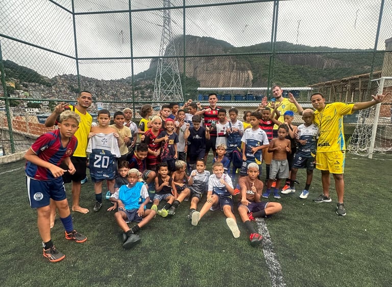 Experience Rocinha through the power of sport. You'll join a football session with kids from the community, sharing the field, exchanging skills and connecting through the joy of the game. Alongside this, you'll take a guided tour through Rocinha, gaining insight into daily life, local initiatives and the role football plays in inspiring local youth. Your participation directly contributes to improving training conditions and creating opportunities for aspiring local talents.
